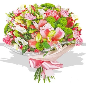 С любовью и нежностью - букет из кустовых хризантем, роз и альстромерийот 3 681 руб. 5 258 руб.Купить
